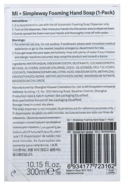 | Модель | Mi Simpleway Foaming Hand Soap |
