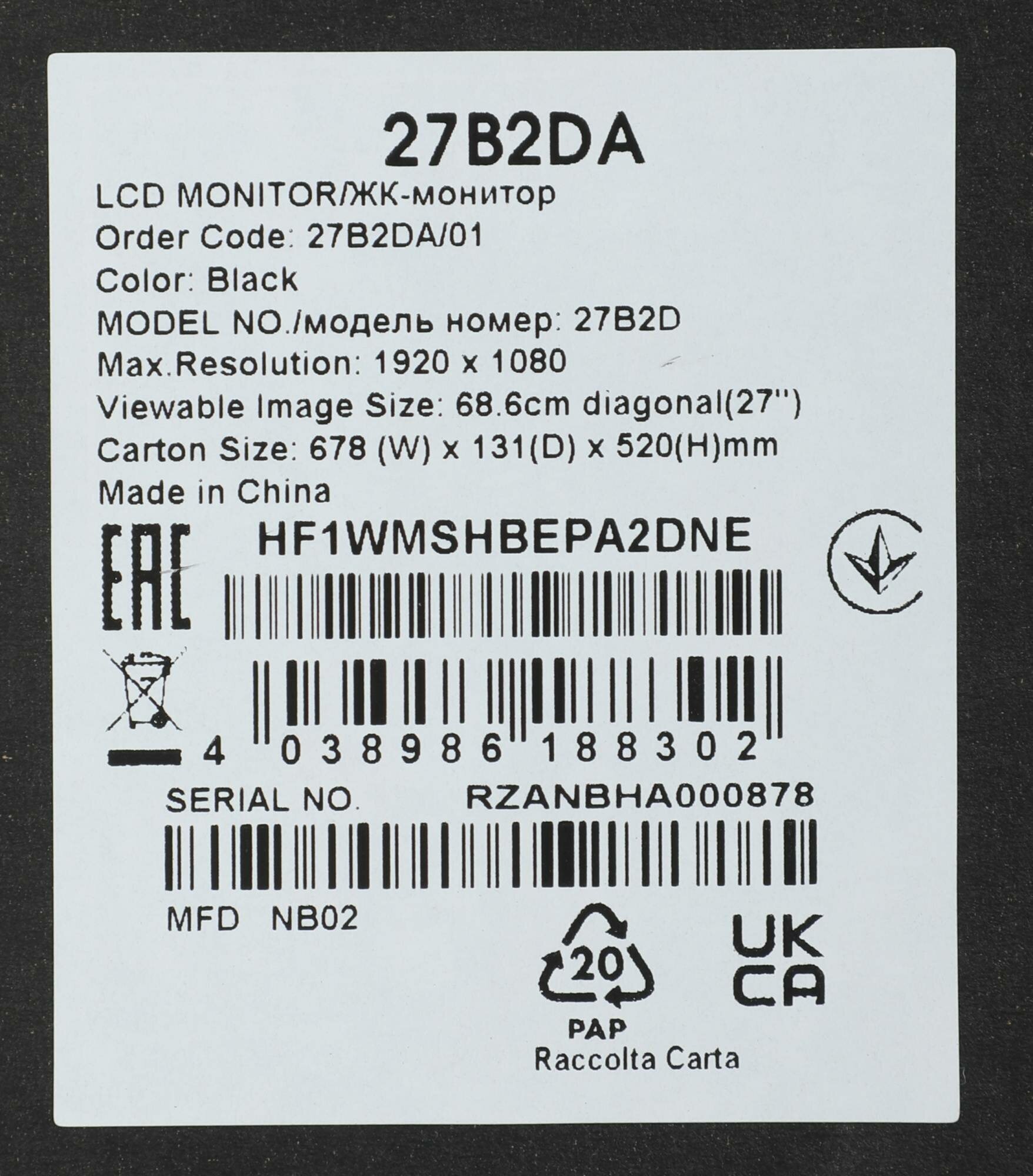 | Экран | 27 ", 1920x1080, 16:9, IPS, 75 Гц, 250 кд/м2, GTG 4 мс |
