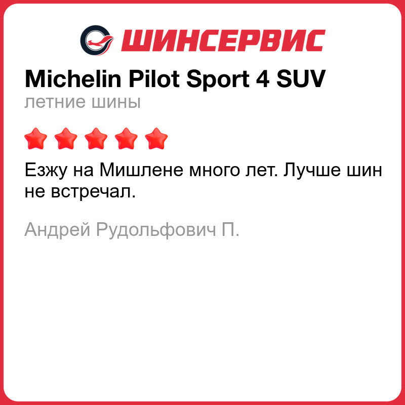 MICHELIN Pilot Sport 4 SUV – шины 2019 года класса Ultra High Performance, предназначенные для кроссоверов и внедорожников. Инженеры MICHELIN постарались наделить шину высокопроизводительными свойствами: стабильностью управления на больших скоростях, уверенным и безопасным торможением в любых погодных условиях и премиальным ездовым комфортом. Над созданием SUV-модификации Pilot Sport 4 инженеры MICHELIN трудились совместно с ведущими автопроизводителями мощных и тяжелых вседорожников: Audi, BMW, Mercedes и Porsche.