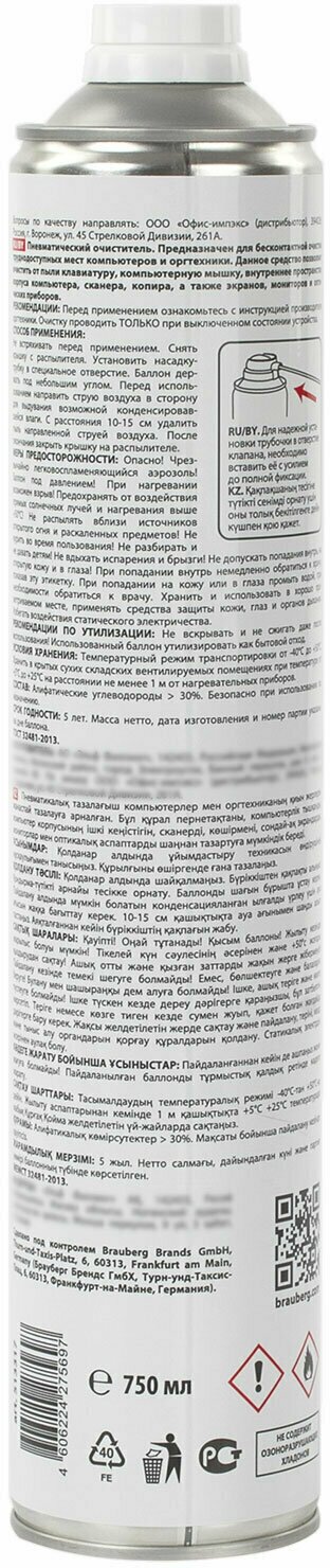 Баллончик со сжатым воздухом для очистки техники Brauberg »