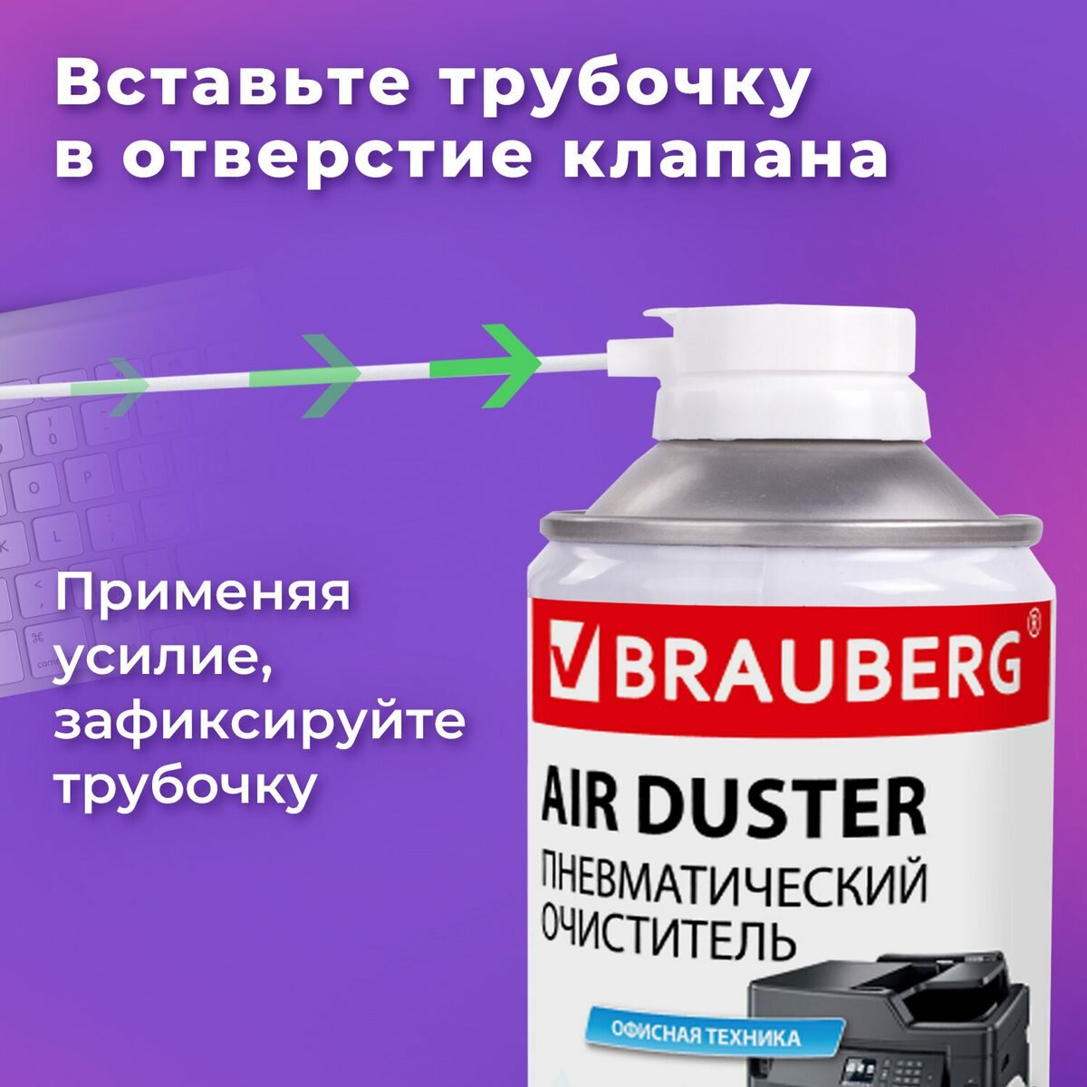 Баллон со сжатым воздухом предназначен для бесконтактного удаления пыли и мелкого мусора из труднодоступных мест и внутреннего пространства компьютерной техники, аудио-, видео- и фотоаппаратуры, офисной и бытовой техники.