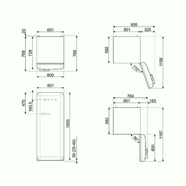 | Ширина с дверцей, открытой на 90 (мм) | 926 мм |