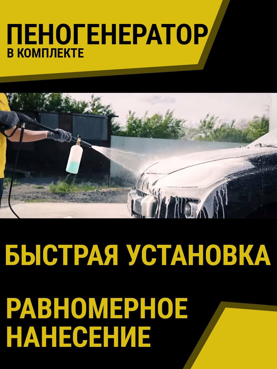 ФУНКЦИЯ САМОВСАСЫВАНИЯ: конструкция насоса обеспечивает стабильный напор даже при минимальном давлении воды на входе мойки.ФУНКЦИЯ AUTO STOP: мотор останавливается автоматически при отжатой спусковой кнопке пистолета.РАЗБОРНЫЙ ПИСТОЛЕТ-РАСПЫЛИТЕЛЬШЛАНГ ВЫСОКОГО ДАВЛЕНИЯ 5 м: увеличенная длина шланга высокого давления позволяет обрабатывать поверхность большего радиуса.КРЕПЛЕНИЯ ДЛЯ АКСЕССУАРОВ: обеспечивают удобство при работе и транспортировке.РЕГУЛИРОВКА РАСПЫЛИТЕЛЯ: позволяет изменить форму струи с мощной без распыления до веерного распыления под углом до 60°.ПЕНОГЕНЕРАТОР: использование моющих средств сокращает время очистки поверхности и способствует устранению сильных загрязнений.КОМПЛЕКТАЦИЯ: пистолет-распылитель, удлинитель пистолета с соплом, гибкий шланг высокого давления, пеногенератор, переходник.ГАРАНТИЯ: 2 года
