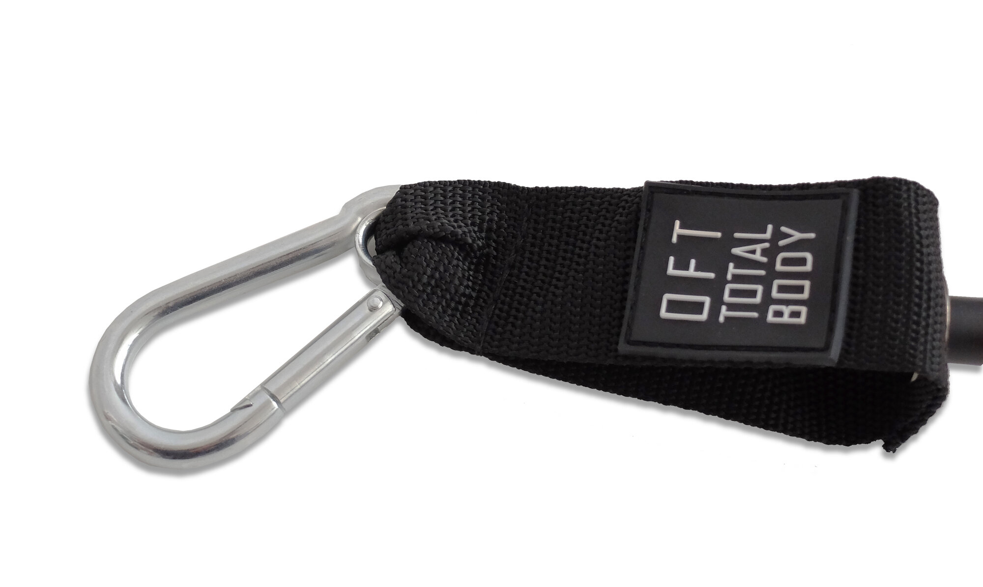 Карабины эспандера позволяют крепить его к рукояткам различного типа. Рекомендуем приобрести дополнительно набор аксессуаров для эспандеров FT-LTX-SET (рукоятки, якорь, сумка).