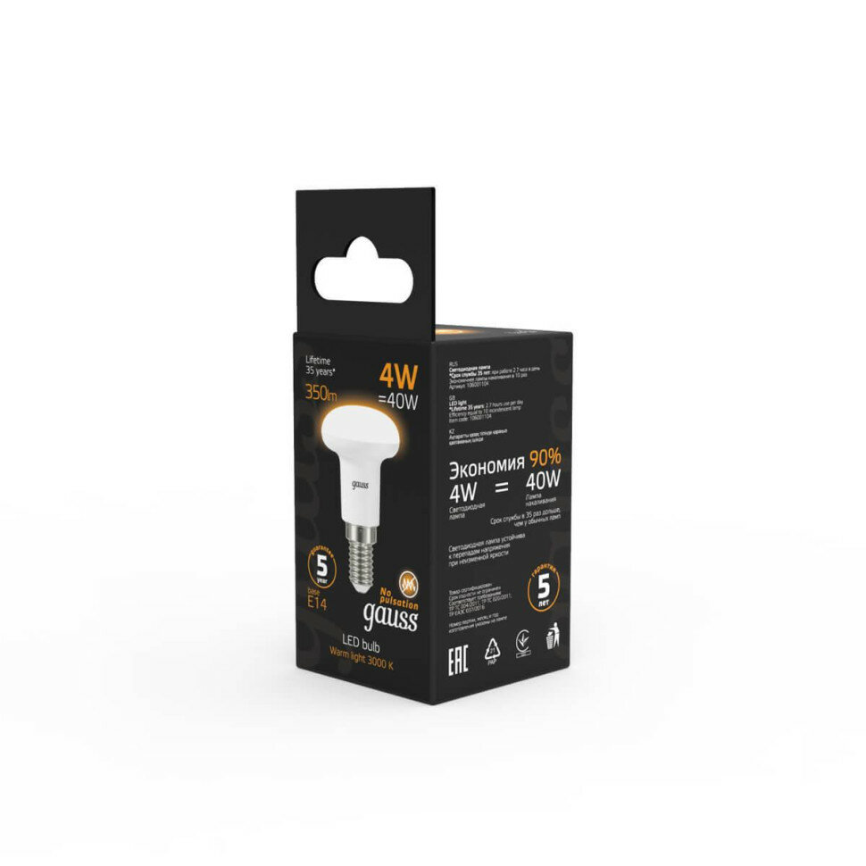 На сегодняшний день товар «Светодиодная лампа Gauss Led Reflector R39 E14 4W 2700K (106001104)» можно купить с кешбеком в 1 магазине: Яндекс.Маркет