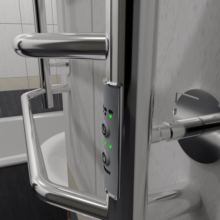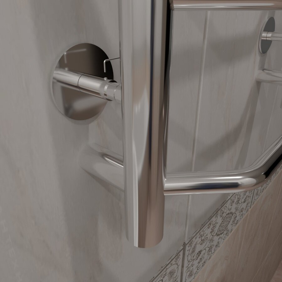 Изделие производится из нержавеющей стали AISI 201. Вертикальные трубы d -32 мм., для горизонтальных вставок используется труба d 18 мм. Нагревательным элементом в полотенцесушителе является греющий кабель аналог теплого пола, кабель заправляется внутрь каждой трубы и передает тепло на поверхность изделия. Во включенном состоянии постоянно поддерживается температура 50-600. Экономичность: Полотенцесушитель снабжен панелью управления. Кнопка включения/выключения и таймер на 2 часа и 4 часа , который позволяет включать изделие на ограниченное время. Эта функция дает возможность экономить электричество. Мощность электрического прибора порядка 60W при стоимости 1 кВт 5 руб несложно посчитать: 60W х 24 = 1,5 кВт в сутки. Стоимость эксплуатации изделия за сутки 1,5 кВт х 5 руб. = 7,5 руб. Максимальный расход электричества за месяц примерно 225 руб. При условии если сушка работает круглосуточно. Удобство монтажа: Полотенцесушитель крепится к стене на четыре держателя. Универсальное исполнение изделия позволяет подключить его, как справа, так и слева. Скрытое подключение: Благодаря приваренным в нижней части вертикальных труб двум распаячным коробкам, в которых соединяется электропроводка, возможно скрытое подключение к электричеству слева и справа. Подключение в розетку: В комплекте также имеется шнур с вилкой, который будет необходим при подключении к розетке.