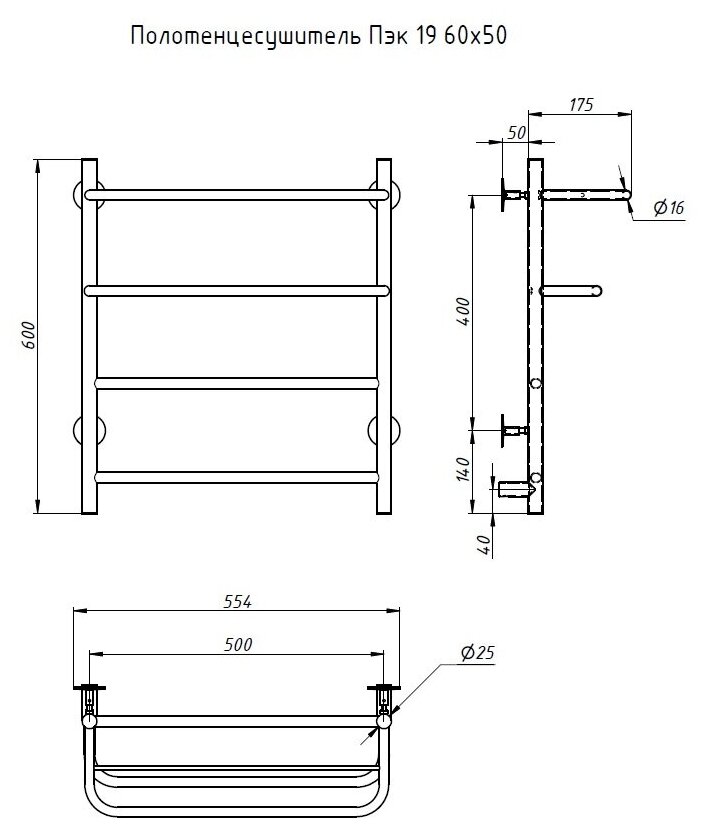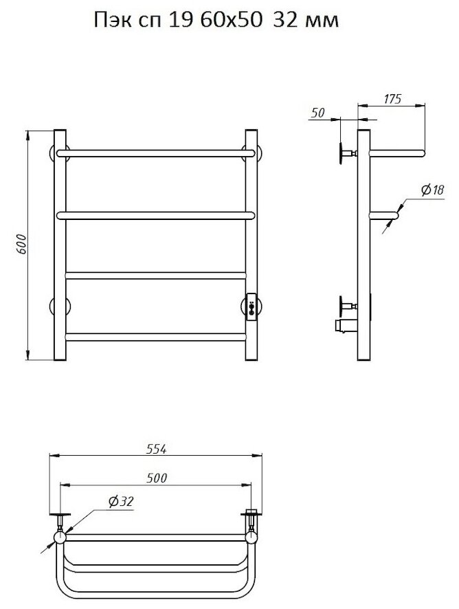 - Полотенцесушитель Электрический ТРУГОР ПЭК 6 80х50 лесенка терморегулятор скрытое подкл/вилка