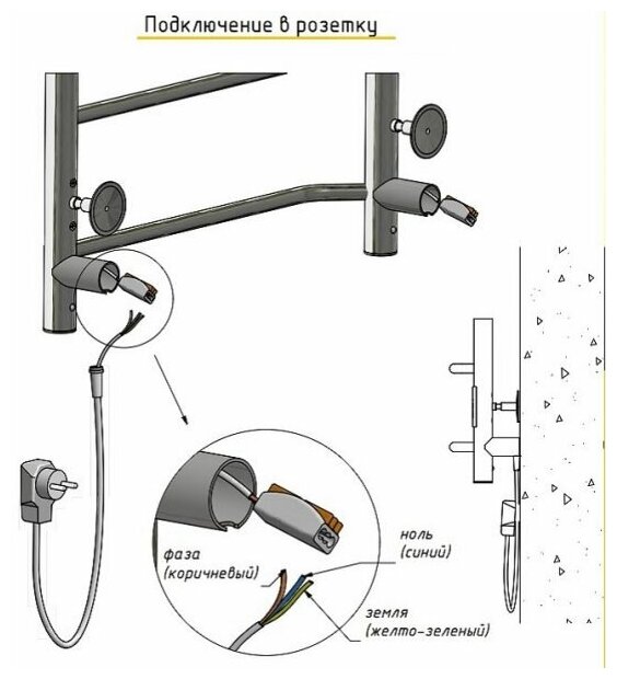 | Подключение | электропровод с вилкой, скрытое электрическое соединение |