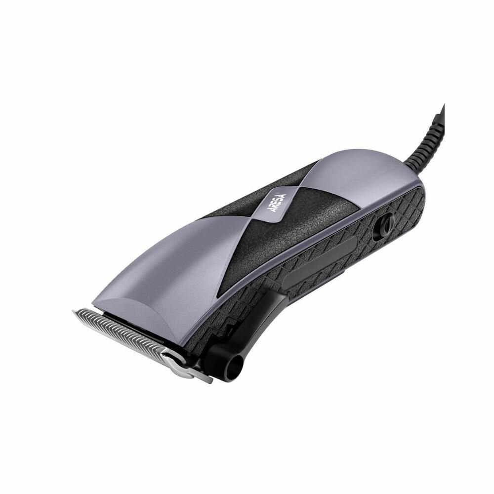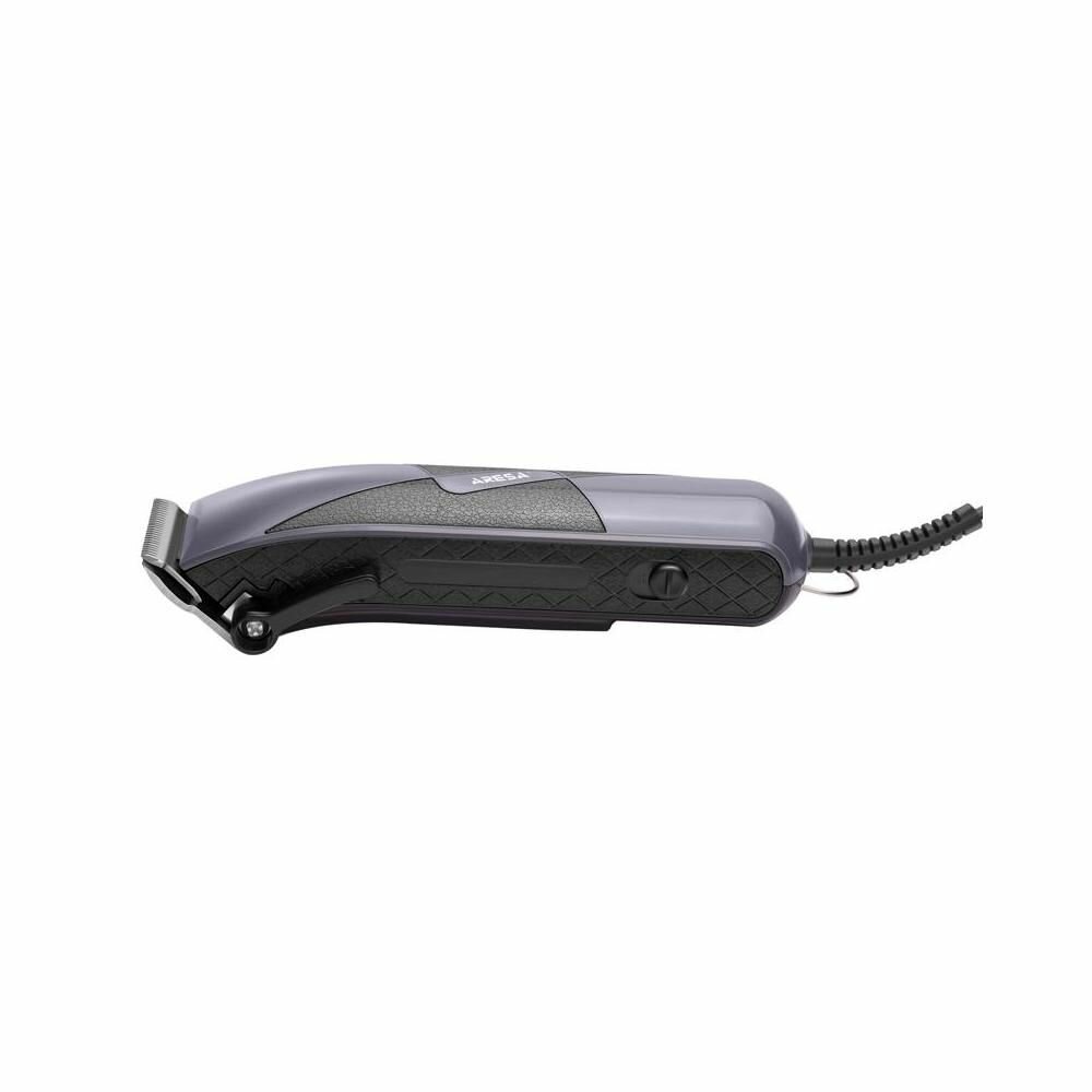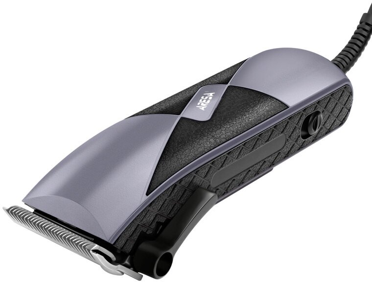 Aresa питается от сети. Эргономичная форма делает использование машинки удобным. Нескользящие элементы на корпусе предупреждают выскальзывание прибора из рук. Для хранения в основании предусмотрена петля для подвешивания.