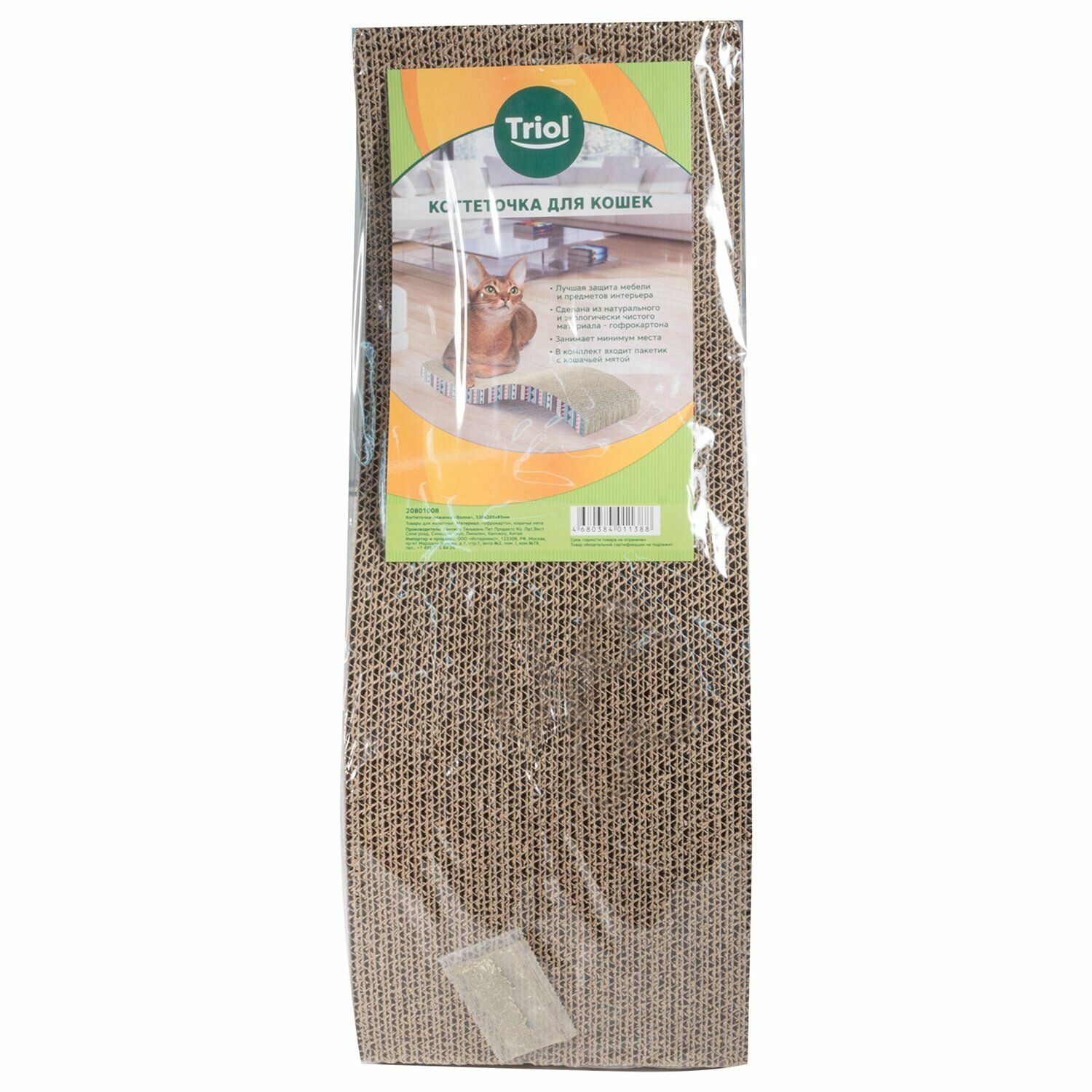 Когтеточка-лежанка "Волна" изготовлена из натурального материала – гофрокартона. Когтеточка очень легкая, не занимает много места в интерьере. Благодаря входящий в комплект кошачьей мяте, кошка быстро привыкнет к когтеточке и перестанет портить мебель, обои и другие предметы интерьера. Упаковано в термоусадочную пленку.