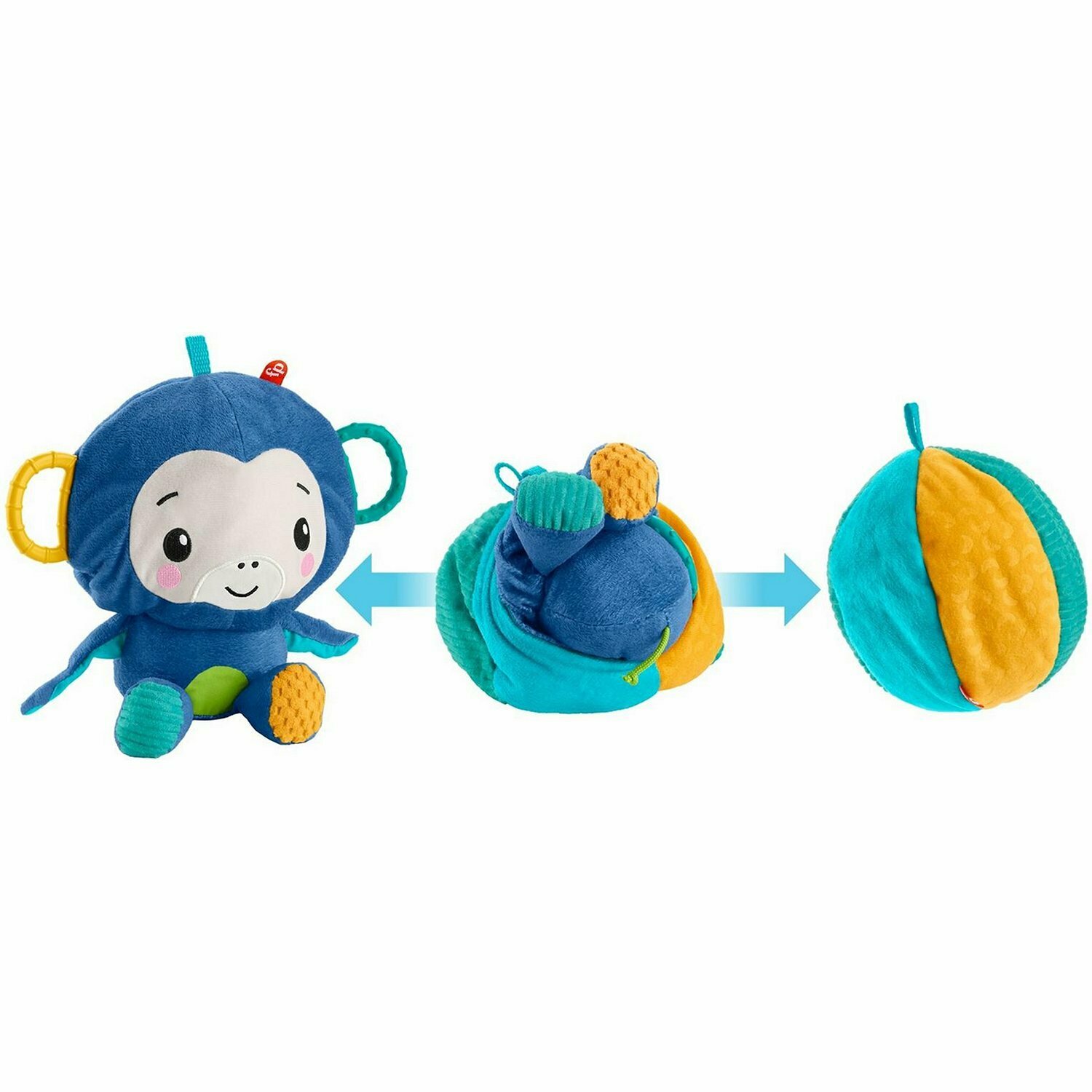Игрушка 2 в 1 от Фишер Прайс — это мягкая обезьянка, которая легко превращается в мяч, что вдвойне радует ребенка! Благодаря разнообразию текстуры тканей, шороху и звенящим звукам, а также ушкам-прорезывателям, которые не содержат бисфенол А, эта плюшевая детская игрушка максимально увлечет вашего малыша. С обезьянкой удобно играть не только дома, но и во время путешествий. Используйте специальный карабин, с помощью которого игрушку можно прикрепить к сумке или коляске, чтобы взять с собой.Особенности— Выверните игрушку Фишер Прайс со стороны обезьянки, чтобы из нее получился мячик— Ребенок с удовольствием будет жевать прорезыватели зубов, которые не содержат бисфенол А— Специальный карабин позволяет прикреплять обезьянку к сумке или одежде, чтобы не потерять игрушку вне дома— Игрушка Фишер Прайс пригодна для стиральной машины (предварительно извлеките из нее присоску)— Взаимодействие с текстурированной игрушкой стимулирует развитие зрительного и эмоционального восприятия, мелкой моторики, воображения ребенка— Для детей с первых дней жизни— Производство Mattel
