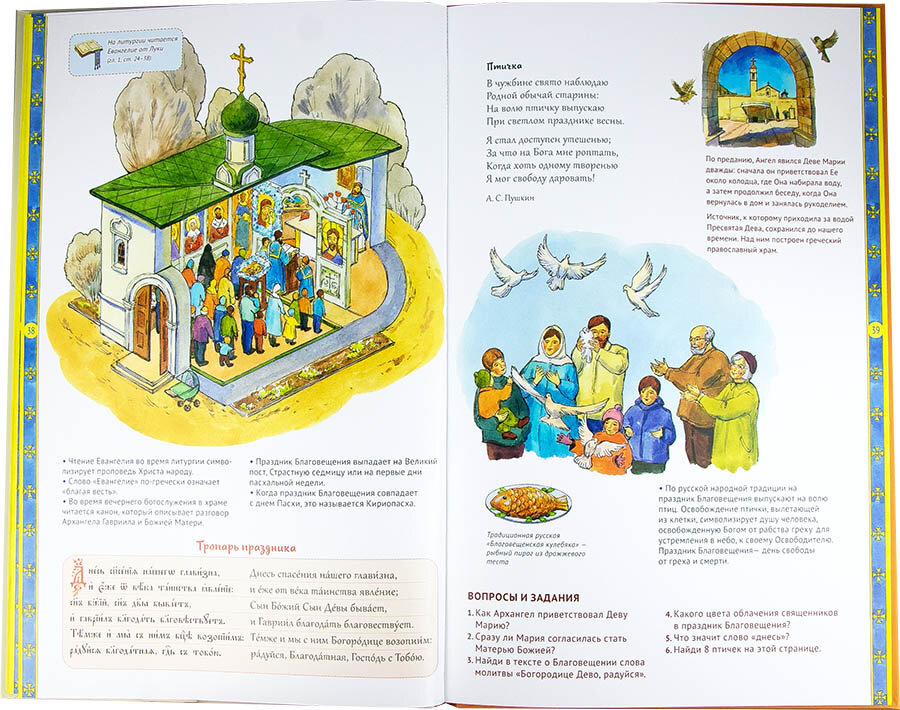 Каждый сюжет книги является законченным фрагментом, поэтому ее можно читать и подряд, и остановиться на особенно любимых в семье праздниках, снова и снова возвращаясь к переживаниям этого святого дня. Иллюстрации подготовлены известной художницей Елизаветой Цымбаревич. Ее нежные и теплые акварельные рисунки создают особую атмосферу доброты и любви.