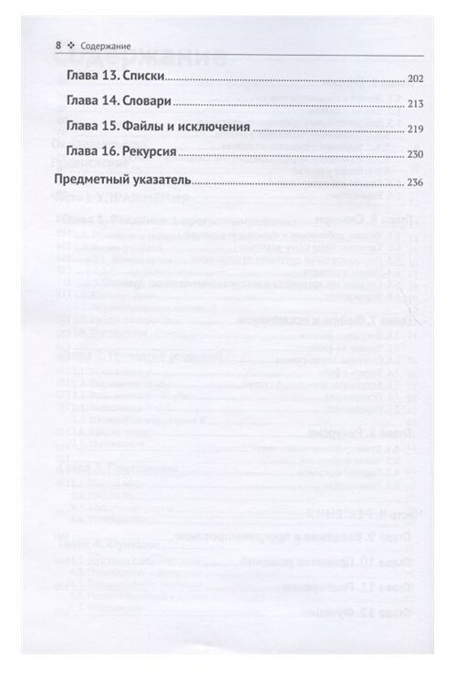 К особенностям данной книги можно отнести то, что в ней используется простой и доступный стиль программирования, упражнения взяты как из области математики и информатики, так и из других дисциплин, и примерно на половину заданий даны решения. При этом сами задания характеризуются различной степенью сложности, а их решения подразумевают использование таких базовых техник программирования, как условные выражения, циклы, основные функции, списки, словари, рекурсия и работа с файлами.