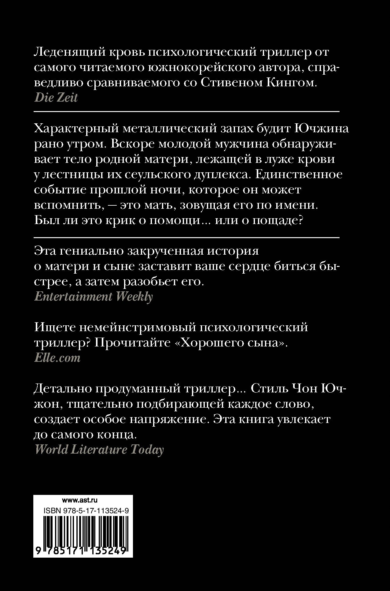 «Хороший сын» стал самым продаваемым корейским триллером 2018 года на Amazon, а права на экранизацию романа уже куплены Голливудом. Захватывающий, атмосферный и абсолютно непредсказуемый триллер, который до последнего держит читателя в напряженном неведении, получил восторженные рецензии от ведущих мировых изданий, среди которых Еntertainment Weekly, The Wall Street Journal, The Financial Times, The Guardian и другие.