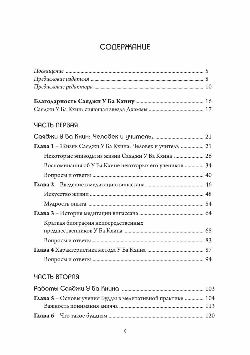Это собрание текстов, наставлений Саяджи У Ба Кхина, учителя випассаны из Мьянмы (Бирма) и биографических сведений о нем. Сборник включает также комментарии С.Н. Гоенки, который был учеником У Ба Кхина и был назначен им учителем.