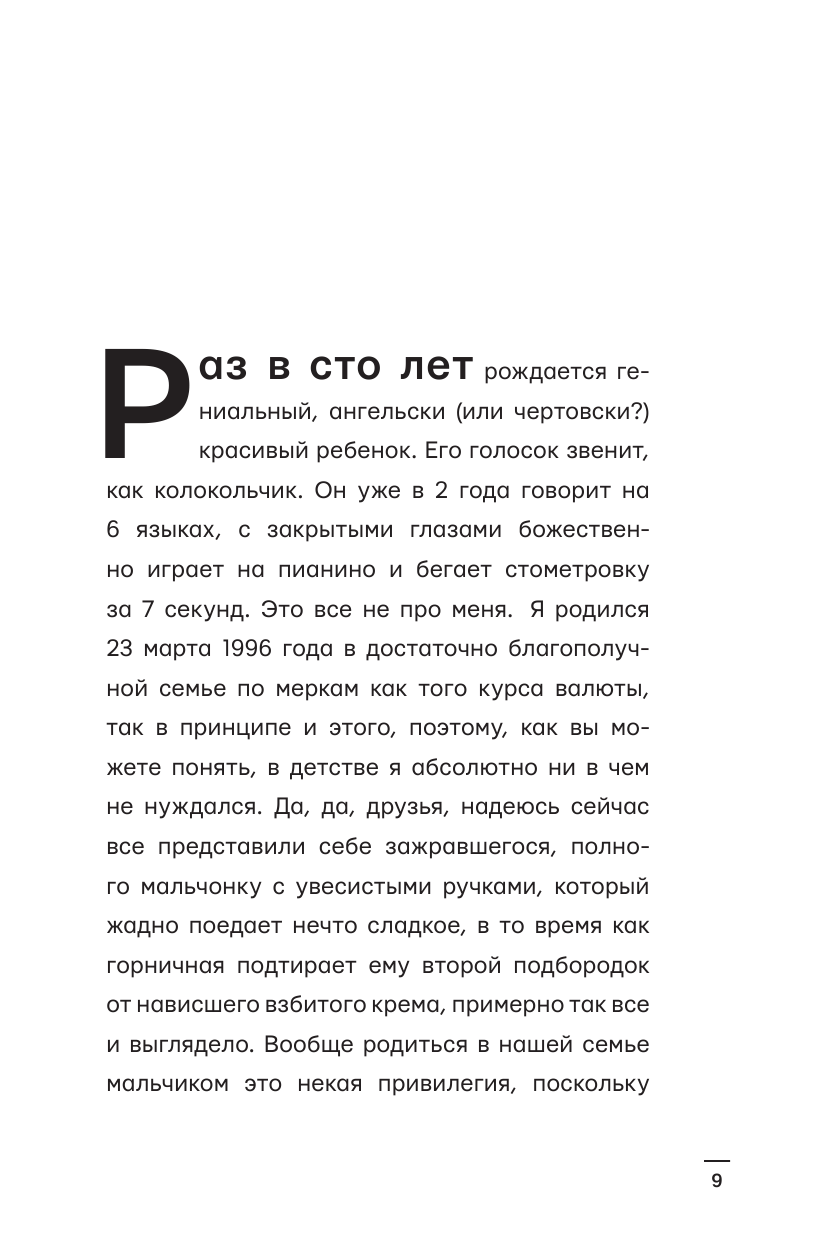 Давайте честно, но это всё прям очень плохо (при всей моей любви к Жидковскому!), начиная с редактуры, которой нет от слова "совсем", заканчивая фотками, которые все подчистую взяты из Инстаграма Алексея. Окей, кроме одной из детства. Крупный шрифт, конские отступы, классика любой блогерской книги( неплохое начало, непонятная середина и конец в котором дублируется история, которую мы читали в начале. Сам Жидковский очень неординарный и интересный, но книга, типичная книга АСТ от известной личности, ничего примечательного в ней нет, это 0 из 10, если Вы понимаете о чем я