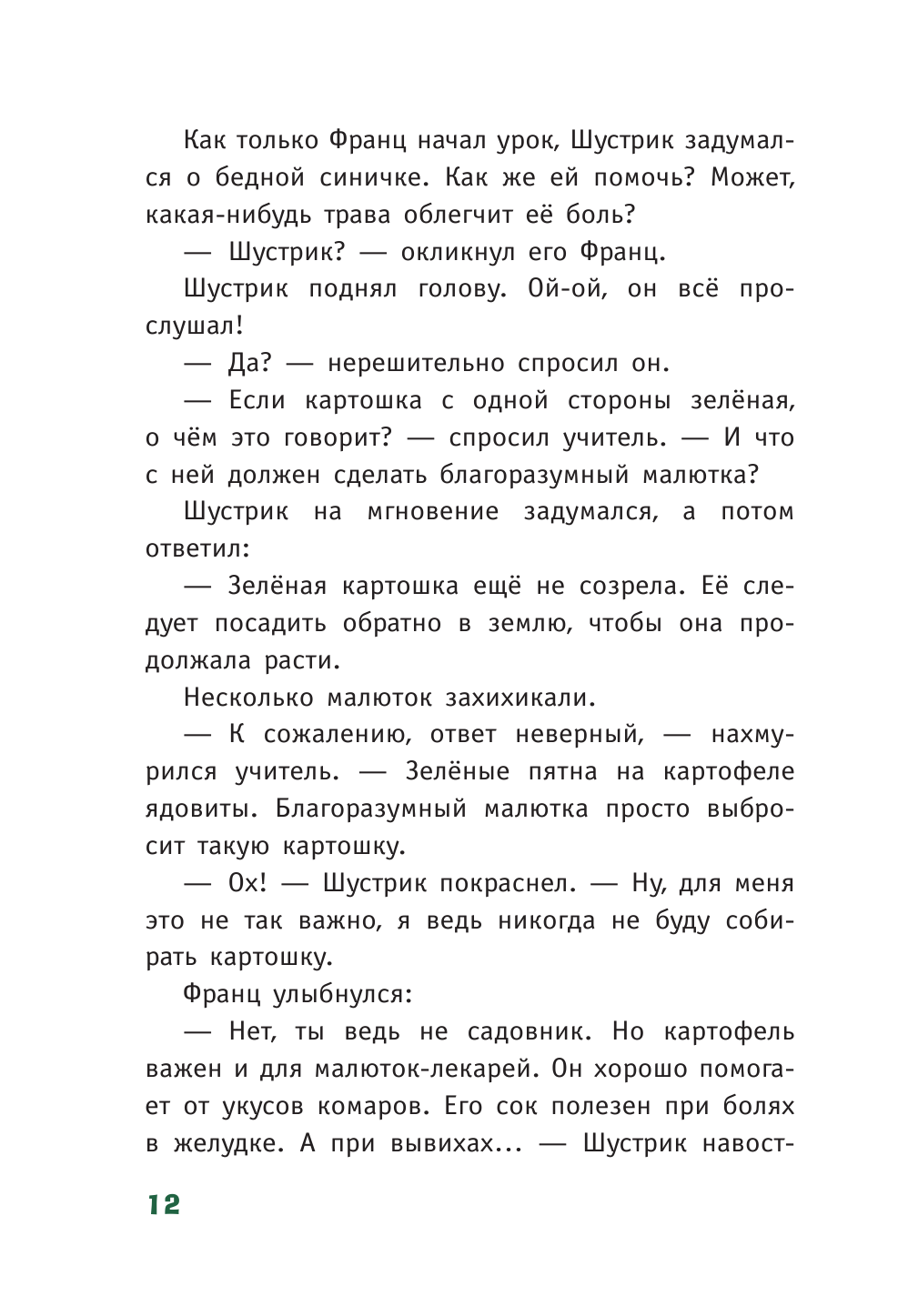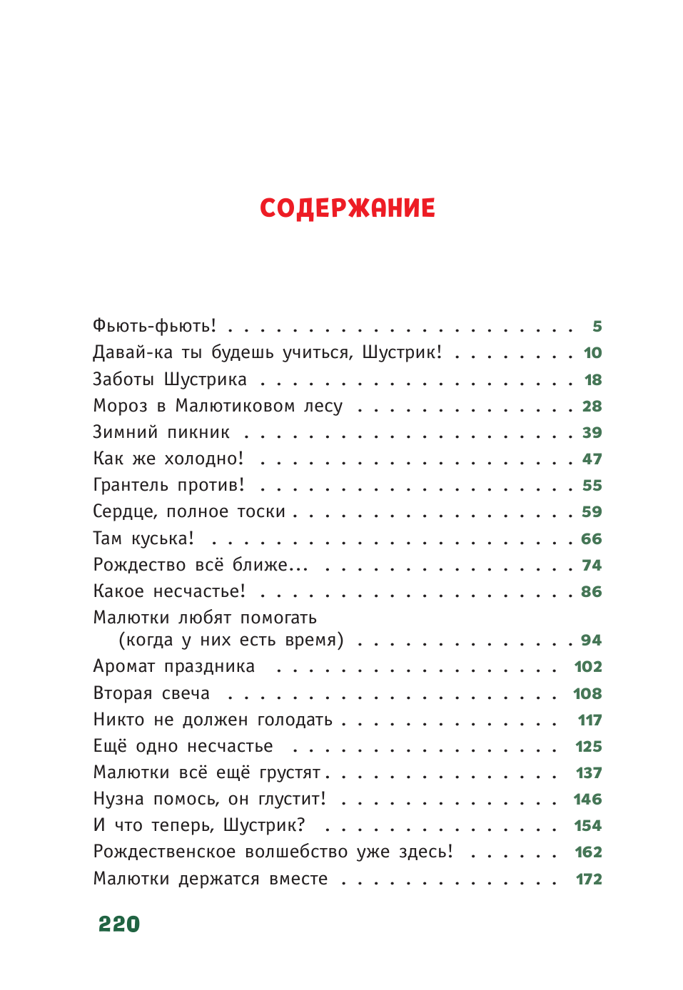 В страну малюток пришла зима. А это значит, что у Шустрика появилось много работы. Не зря же он понимает язык животных! Ему нужно позаботиться о зверятах, помочь им добыть еду и вылечить тех, кто попал в беду и поранился. Но малышу не справиться со всем этим одному! Ему нужна помощь. Вот только не все жители деревни хотят ему помогать. Так, ворчун Грантель говорит всем, что от лесных животных одни неприятности! Шустрик хочет понять, почему Грантель такой вредный? Может быть, это не случайность и ему самому нужна помощь?
