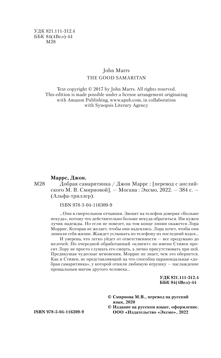 Книга: Добрая самаритянка (Джон Маррс); Эксмо, Редакция 1, 2025