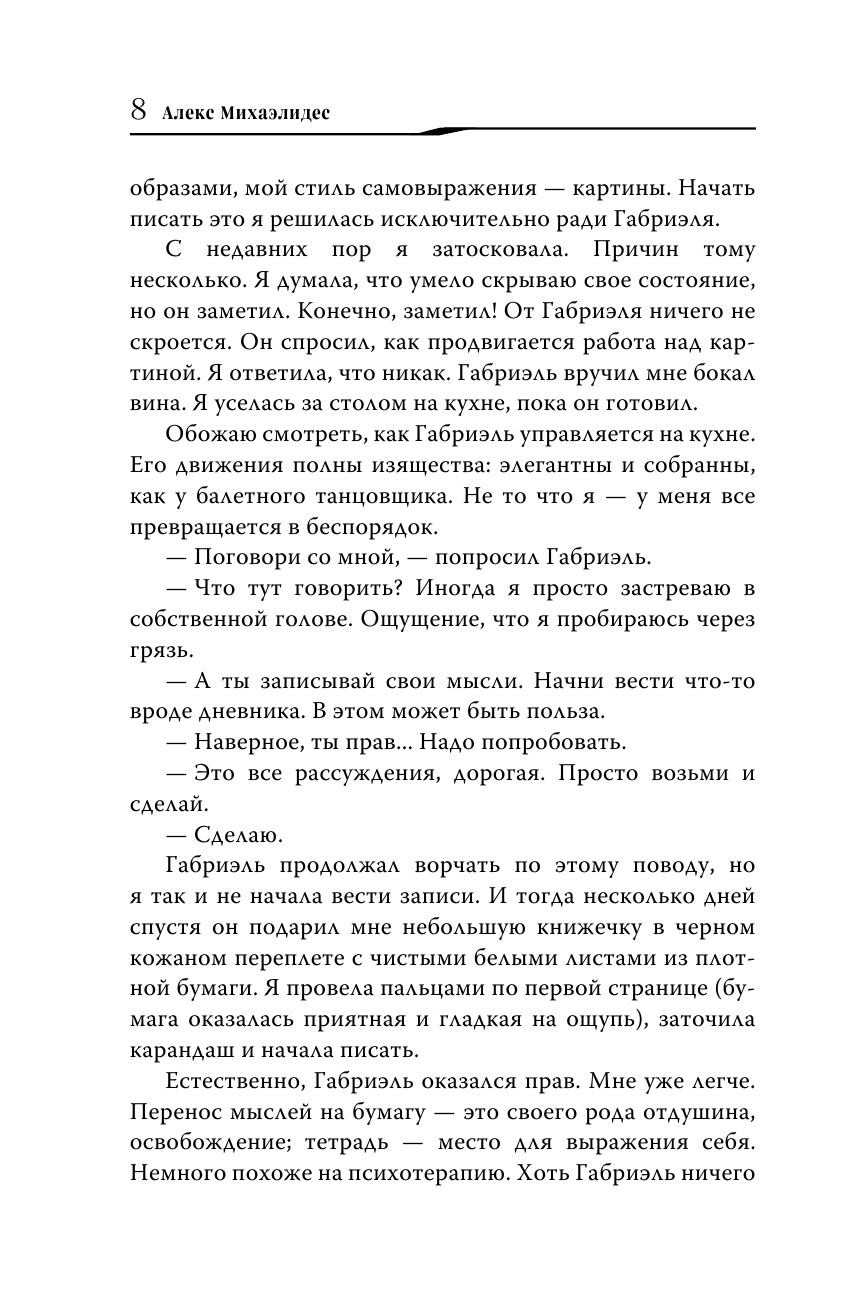 Тео Фабер – криминальный психотерапевт. Он долго ждал возможности поработать с Алисией, заставить ее говорить. Но что скрывается за его одержимостью безумной мужеубийцей, и к чему приведут все эти психологические эксперименты? Возможно, к истине, которая угрожает поглотить и его самого...
