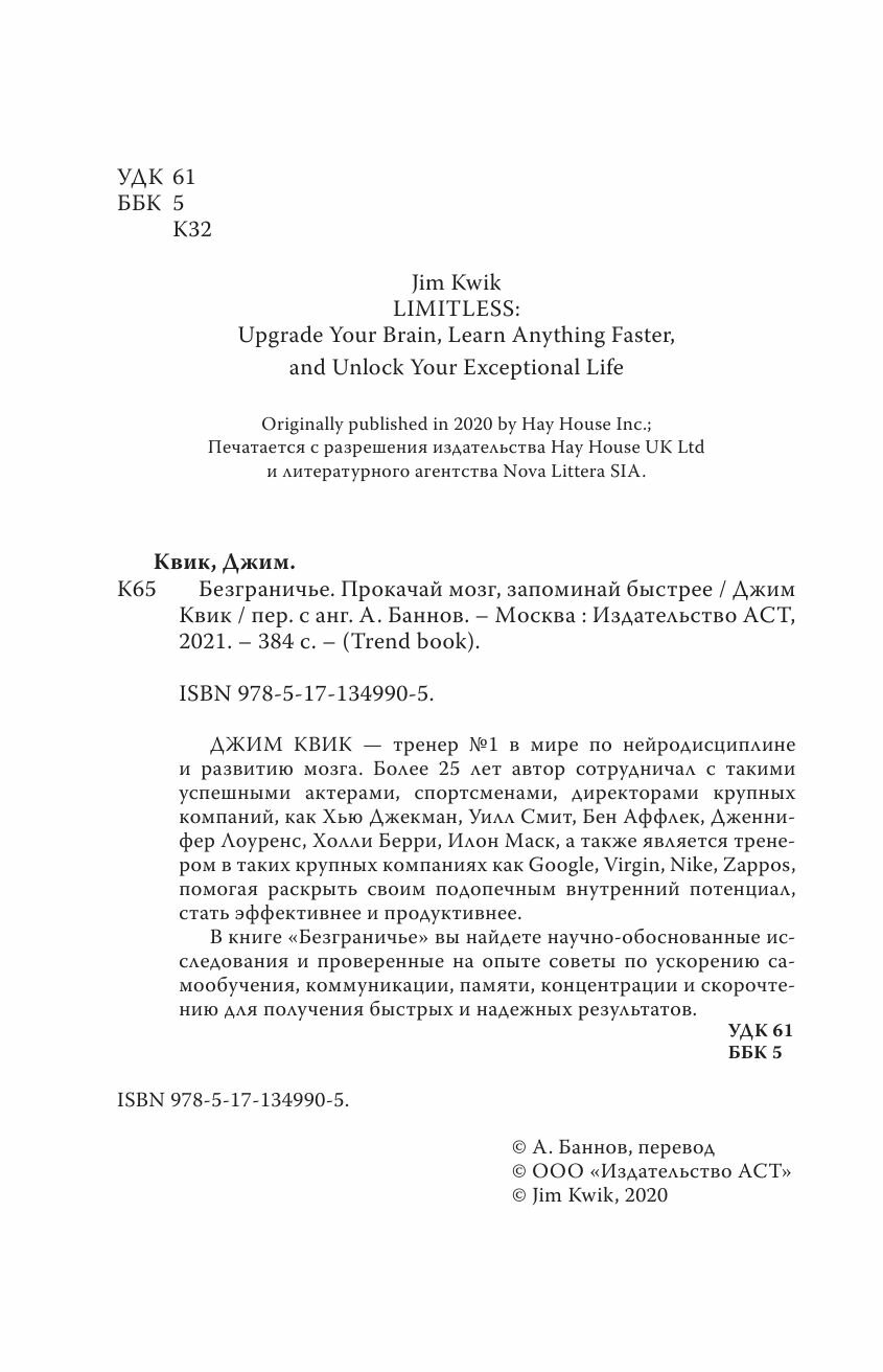 Безграничье. Прокачай мозг запоминай быстрее (Джим Квик); Издательство АСТ, 2020