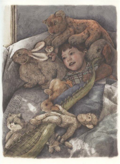 Перед покупкой я читала отзывы к этой книжке. Мне очень понравилось как кто-то написал, что она \"почти святочная\". Что-то есть в ней такое. Также, встречала комментарии, что картинки мрачные. Не могу согласиться. Жаль, конечно, что нет возможности здесь прикрепить фото. Иллюстрации действительно в серо-коричневых тонах, но книжка не мрачная. Мне напомнила иллюстрации из моего детства. Пропорциональная рисовка персонажей. Очень добрая и милая книжка. Про благотворительность, если можно так сказать) Поначалу я думала, что на обложке девочка - но нет, на обложке мальчик) История про мальчика и котика) У меня тоже похожий Плюшевый котик, поэтому и взяла