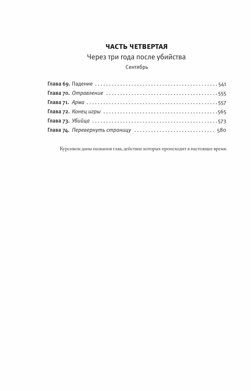 Писатель отправляется отдохнуть в роскошный горный отель, но вместо отдыха распутывает таинственное преступление, совершенное там много лет назад. В этой безумной истории есть все — труп на первой странице, любовный треугольник, блеф и театральные эффекты с участием богатых финансистов и наследниц русского дворянского рода. Кто убийца? Уж точно не тот (не та, не те), кого назначит на эту роль самый вдумчивый читатель. Интрига петляет, как серпантин в Швейцарских Альпах, 600?страничный роман держит в напряжении от первой до последней строчки. И не удивительно, что роман входит в десятку самых успешных книг, написанных на французском языке в 2020 году, а тираж его стремительно приближается к миллиону.