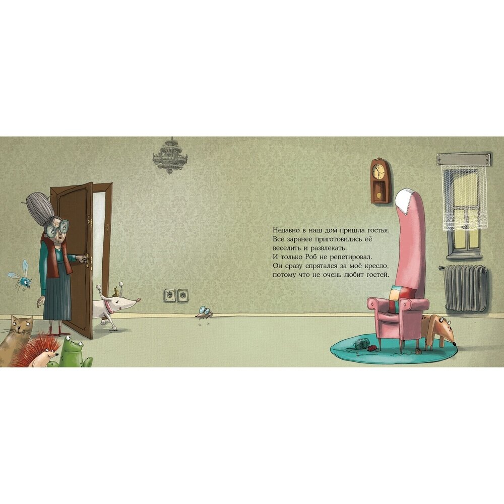 Кто только не живёт в доме старой бабушки Лейлы, целый набор разных живностей со своими проблемами. В этой книге идёт речь о застенчивом псе Робе, он очень стесняется выступать на публике, да и не только, то просто стеснительный, но однажды к бабушке Лейле приходят гости и все устраивают представление перед гостями, все кроме Роба, ведь он так стесняется, но все же и он показывает свой номер и оказывается это не так уж и страшно и все вокруг готовы принять пса с его любыми недостатками, к тому же у него появляется подруга. Книга для развития эмоционального интеллекта у ребенка, книгу нужно не просто читать, но и много обсуждать, спрашивать про эмоции персонажей и самого ребенка. В книге есть примеры, что надо обсудить с ребенком и на чем заострить внимание по прочтение. Книга не из серии приятно почитать. Однозначно рекомендую для чтения с детьми и обсуждения эмоций