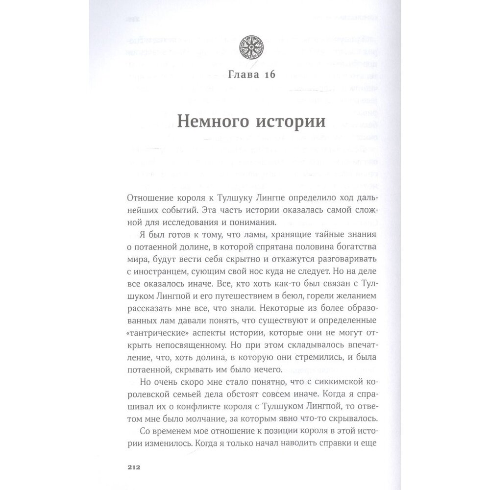 В Тибете существуют предания о Стране Бессмертия — потаенной долине, скрытой на склонах горы Канченджанга. Эта долина существует в иной реальности, где нет смерти, болезней и страданий, — но при этом она расположена в нашем мире и не нужно умирать, чтобы попасть туда. В начале 1960-х годов харизматичный лама Тулшук Лингпа вместе с тремя сотнями последователей отправился на поиски потаенной долины. Эта книга — увлекательный рассказ о его экспедиции. Томас К. Шор потратил годы на тщательные исследования, чтобы рассказать невероятную и захватывающую историю жизни Тулшука Лингпы. Автор беседовал с участниками той экспедиции, странствовал по Гималаям, изучил культуру и быт живущих там народов, погрузился в их мифологию и попытался разобраться в хитросплетениях представлений коренных обитателей Тибета.