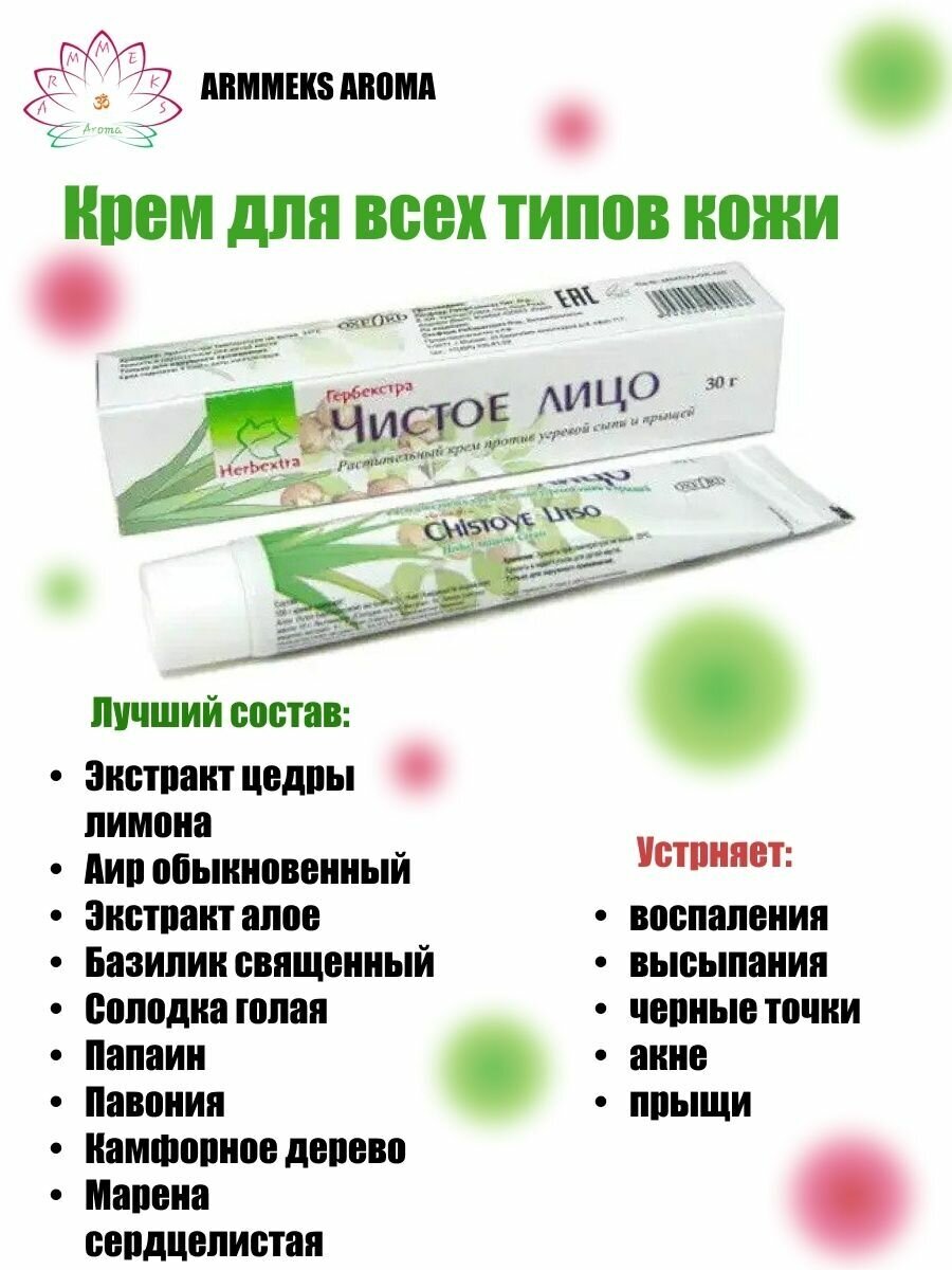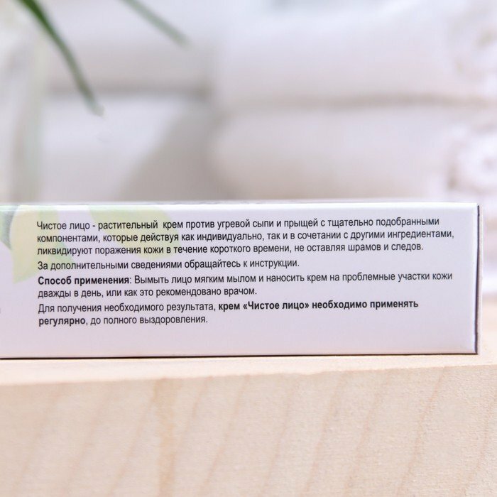 Растительный крем против угревой сыпи с тщательно подобранными компонентами, которые действуют непосредственно или вместе с другими компонентами в нём, избавляя от угревой сыпи и не оставляя на лице рубцов.