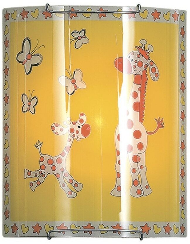 Бра сделает более уютной зону отдыха в комнате ребенка. Расположенный над кроватью светильник обеспечит комфортные условия для чтения или просмотра мультфильмов на планшете. Дополнительное удобство создает выключатель в виде цепочки: достаточно потянуть за нее, чтобы загорелся свет. Стеклянный рассеиватель имеет форму слегка изогнутого прямоугольника, зафиксированного хромированной арматурой. Декор создан с расчетом на детское восприятие: на ярком желтом фоне изображены веселые и порхающие бабочки.