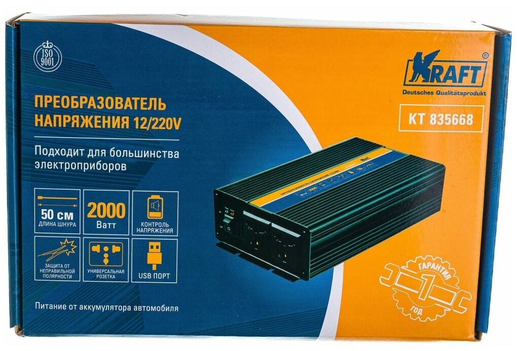 - ОНЛАЙН ТРЕЙД.РУ Инвертор автомобильный KRAFT KT 835667 12/220V, 1500W