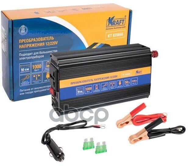 ОНЛАЙН ТРЕЙД.РУ Инвертор автомобильный KRAFT KT 835667 12/220V, 1500W