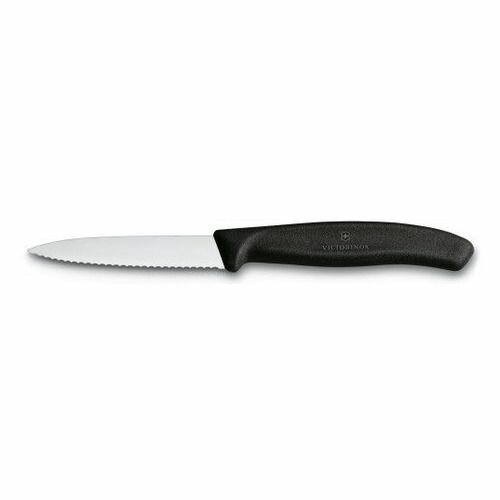 Нож для кухни с серрейторной заточкой. Небольшой и удобный, он идеально подходит для нарезки помидоров и сосисок, для измельчения, очистки и декорирования фруктов и овощей. Изделие отлично чувствуется в руках и не нагружает кисть Малый вес ножа, 60 грамм; Общая длина изделия 194 мм; Серрейторное лезвие; Упаковка блистер.
