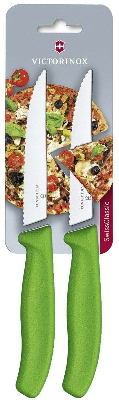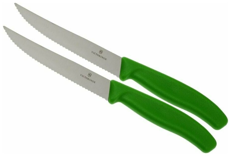Набор ножей Victorinox Swiss Classic состоит из двух ножей с серрейторной заточкой. Идеально подходят для нарезки стейка, колбасы, овощей и фруктов. Пластиковая рукоять, лезвие 12 см из высококачественной нержавеющей стали, острый кончик.