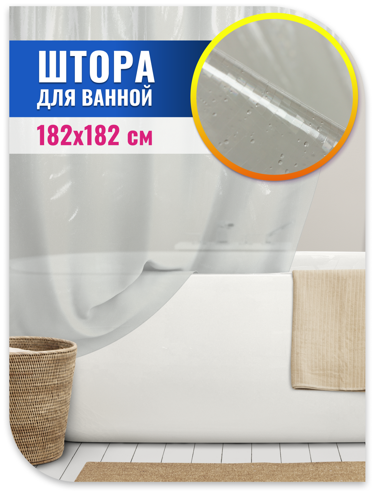 Штора для ванной 3D Meiwa Asteria 182х182 см (размер: 182x182 см)