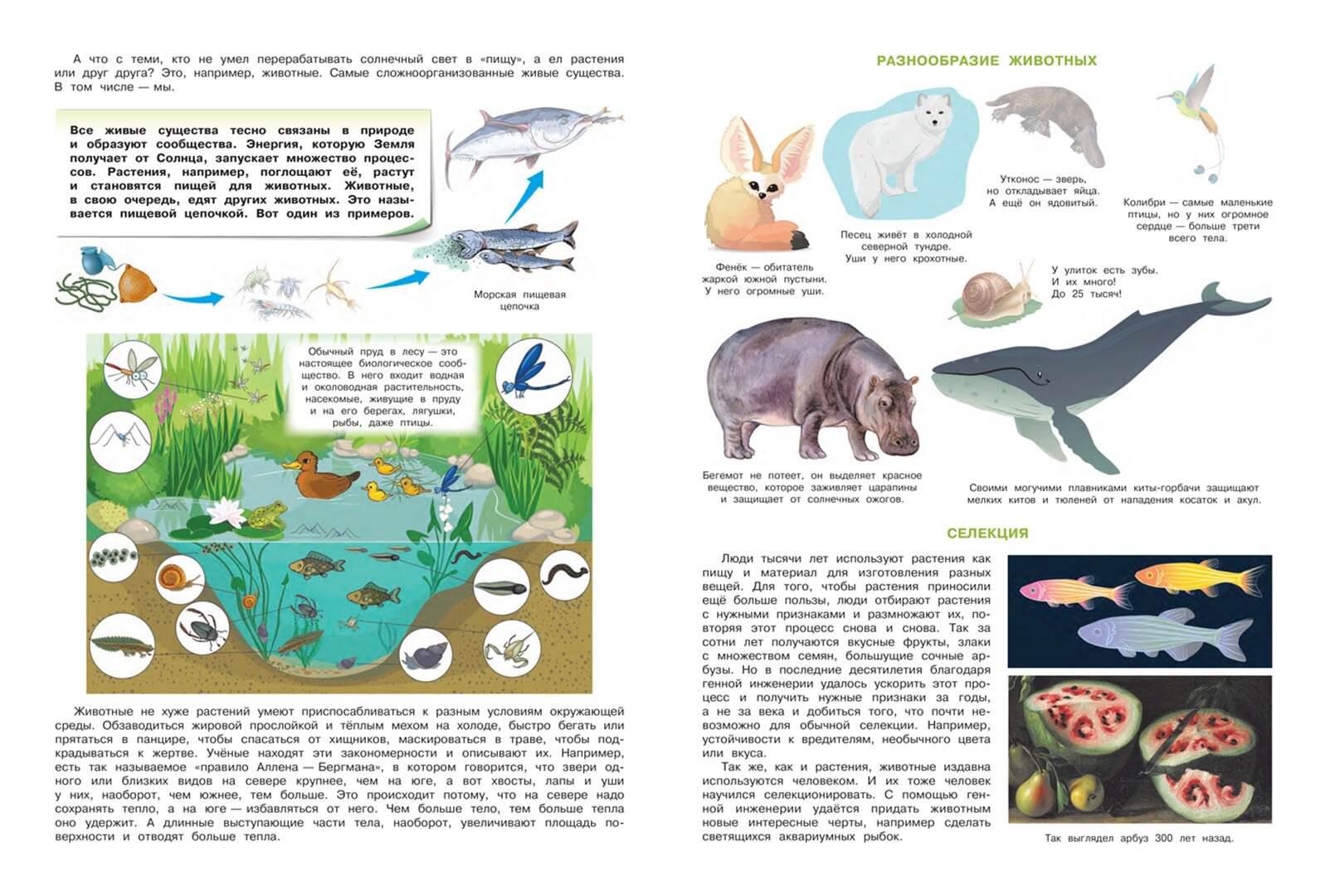 Какой адрес у нашей планеты? Почему бывают цунами и что у Земли внутри? Листая эту красочную энциклопедию, ребенок узнает, как устроена наша планета, сколько удивительных явлений происходит на ее поверхности и в недрах, познакомится со всем богатством и разнообразием живой природы, узнает о множестве интересных и необычных фактов о растениях и животных, о том, как развивалась наука селекции.