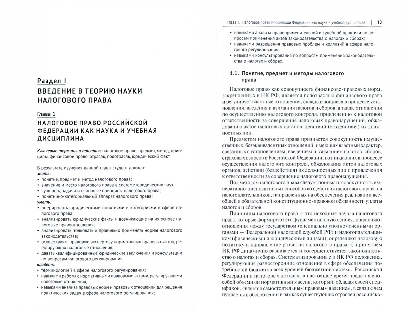 В учебнике представлен теоретико-методологический материал для изучения учебной дисциплины "Налоговое право". Комплексно и всесторонне раскрыто содержание налогового права и его принципов, налогового правоотношения, налогообязанных лиц, налоговой политики государства, элементов налога, налоговой обязанности, налогового контроля, налогового правонарушения, налоговой ответственности, производства по делам о налоговых правонарушениях, обжалования нормативных и ненормативных актов налоговых органов, федеральных, региональных и местных налогов и сборов, страховых взносов, специальных налоговых режимов. Используется практико-ориентированный подход в изложении материала, сопровождающийся практическими примерами из правоприменительной налоговой практики. Для закрепления получаемых знаний текст сопровождается таблицами, схемами, тестовыми и практическими заданиями, вопросами для самоконтроля.