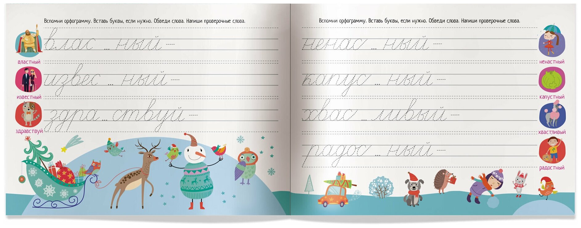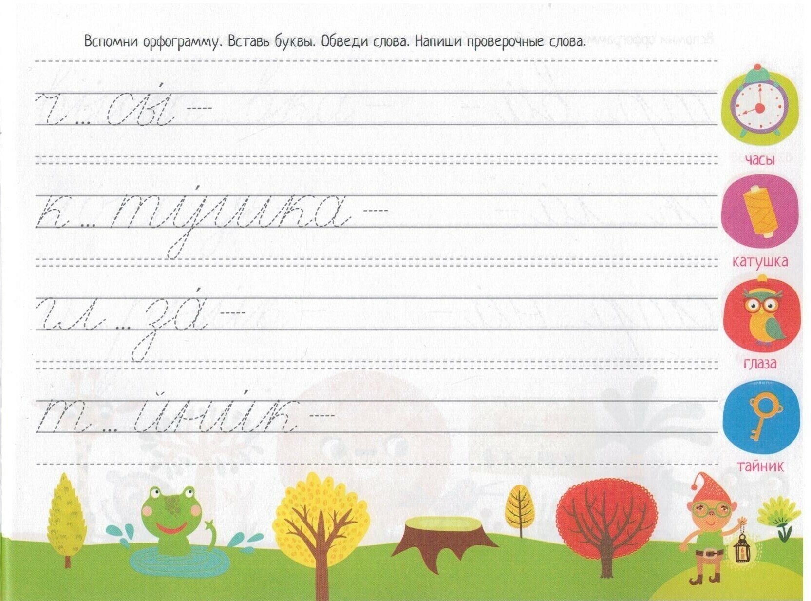 Эти прописи помогут ребёнку освоить грамотное написание слов с безударными гласными, парными и непроизносимыми согласными. Благодаря непринуждённой тренировке ребёнок научится легко преодолевать ошибкоопасные места в словах. В процессе работы с прописями у ребёнка формируется красивый почерк, развиваются словарный запас, грамотная речь и мелкая моторика.