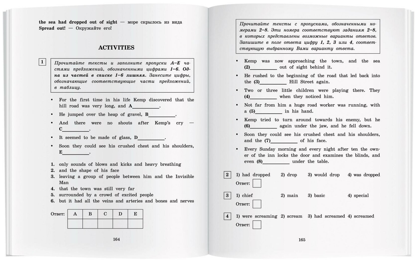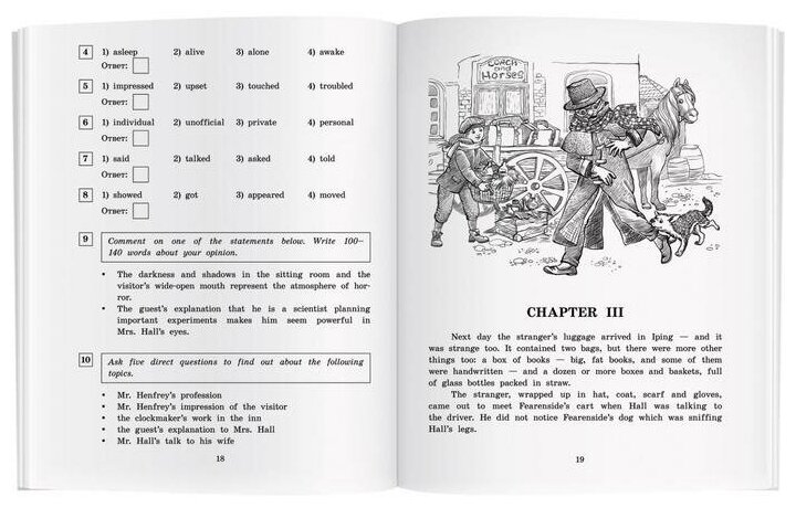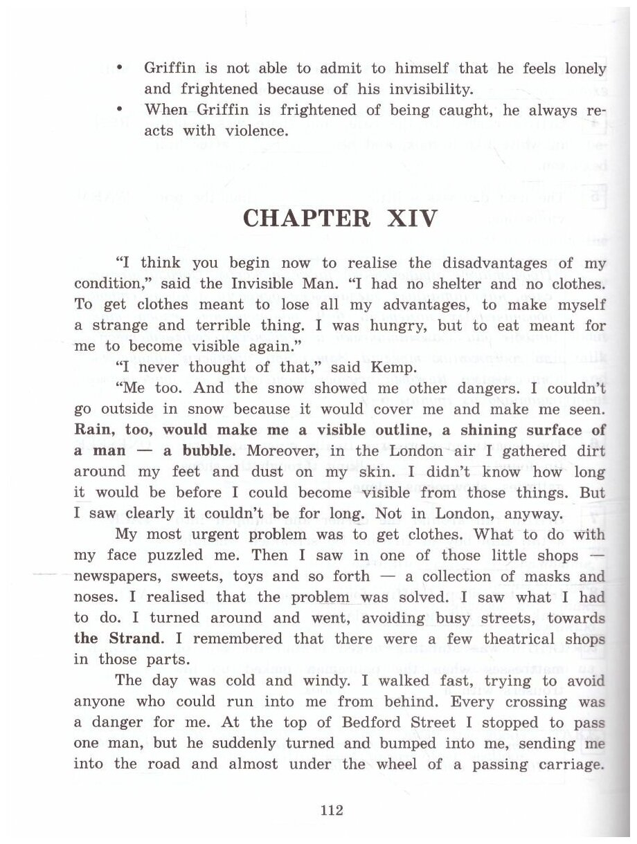 Книга представляет собой адаптацию знаменитого научно-фантастического романа известного английского писателя Герберта Уэллса (1866 - 1946) "Человек-невидимка". Роман повествует о трагической судьбе физика Гриффина, который изобрел средство, делающее тело человека невидимым. Невидимость должна была позволить гениальному ученому изменить весь мир, но вместо этого его изобретение изменило его самого, превратив в опасного безумца, и привело к самым трагическим последствиям. Данное пособие поможет учащимся средней школы подготовиться к единому государственному экзамену по английскому языку. Текст пособия адаптирован в учебных целях до уровня Upper Intermediate. Каждая глава сопровождается комментарием, переводом трудных слов и выражений, а также упражнениями в формате ЕГЭ, направленными на формирование коммуникативной компетенции учащихся. Упражнения позволят сформировать коммуникативные умения в чтении, письменной речи, говорении, а также развить лексико-грамматические навыки. В конце пособия помещены ответы к большинству заданий и англо-русский словарь. Книга предназначена учащимся старших классов образовательных организаций, а также широкому кругу лиц, изучающих английский язык