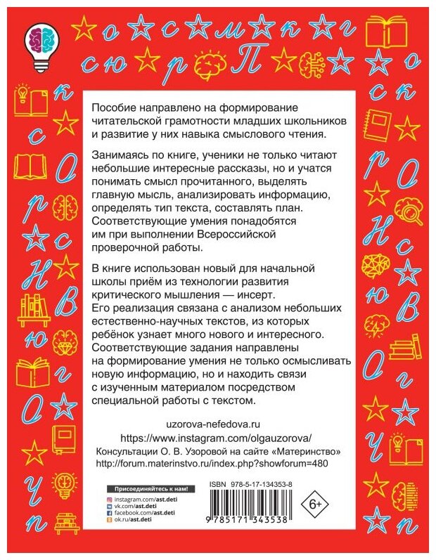 Ольга Васильевна Узорова — педагог-практик, автор более 6 000 учебных, методических и развивающих пособий для дошкольников и учеников младших классов. По результатам 2020 года О. В. Узорова признана одним из наиболее востребованных в России авторов учебных пособий.
