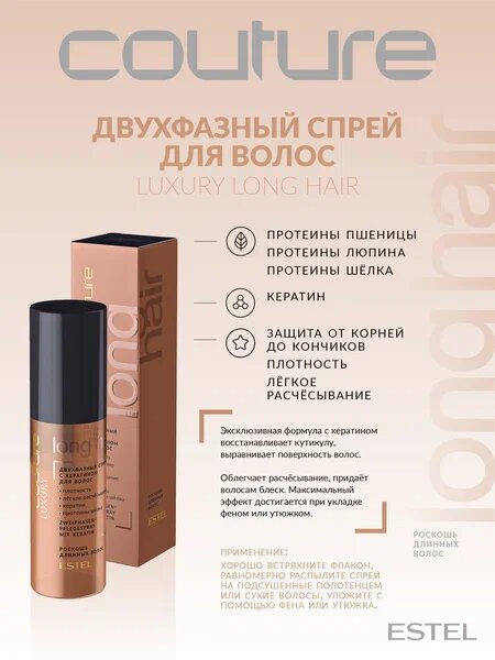 | Полное наименование | C/H/SP100 Двухфазный спрей с кератином для волос LUXURY LONG HAIR ESTEL HAUTE COUTURE (100 мл) |