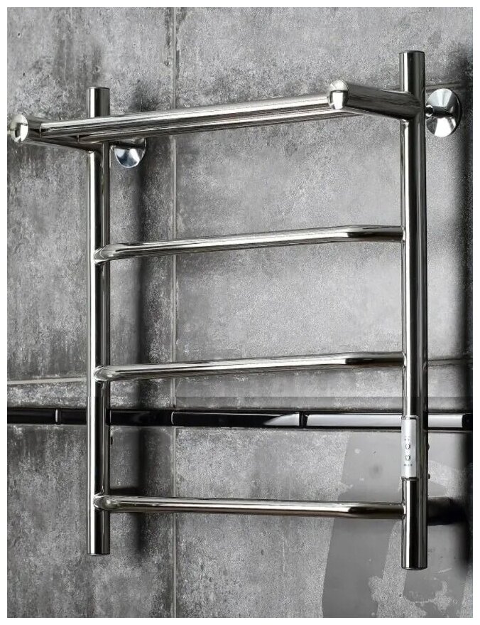 Тругор представляет собой удобный в эксплуатации электрический полотенцесушитель. Наличие полки увеличивает тепловую производительность прибора и позволяет единовременно сушить несколько банных полотенец или других текстильных изделий. Возможность скрытого подключения позволяет избежать наличия в видимой части интерьера провода и штепсельной вилки.