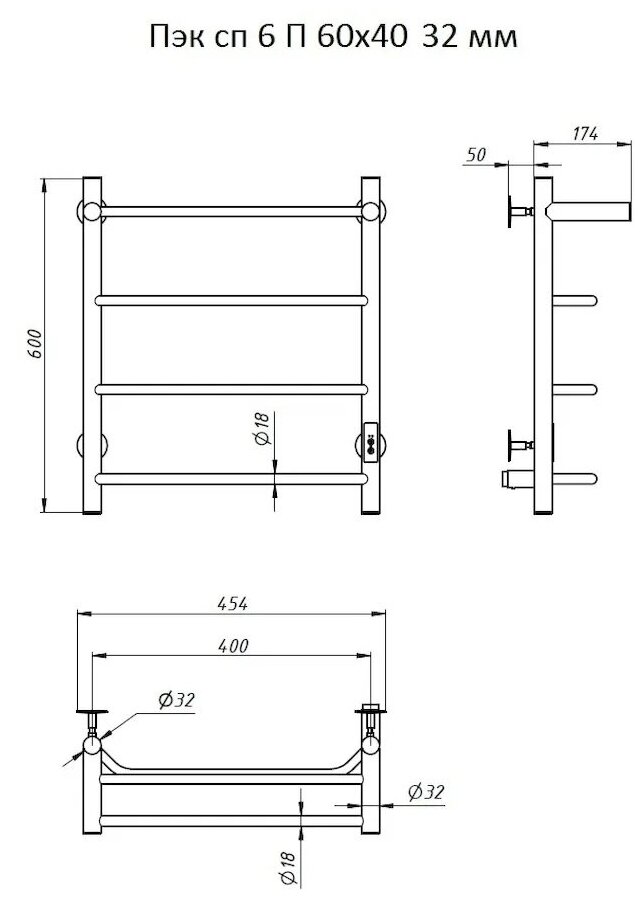 Электрический полотенцесушитель лесенка Тругор Пэк сп 6 П 60х40 32 мм