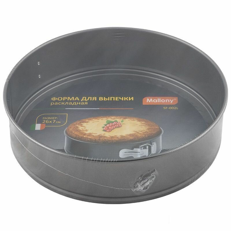 Круглая форма для выпечки пирога будет отличным выбором для всех любителей домашней выпечки. Размер формы 26 на 7 см. Антипригарное покрытие. Материал - углеродистая сталь.