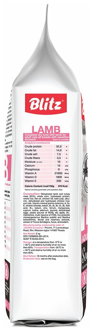 Сервис сравнения цен СкидкаГИД предлагает сравнить цены на товар «Сухой корм для кошек Blitz For Adult Cats Lamb 04 кг»