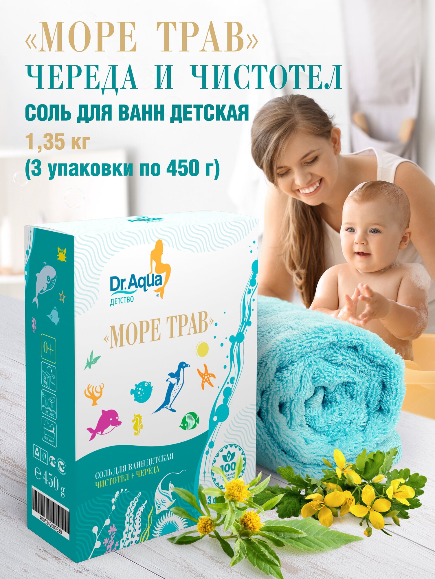 | Полное наименование | Соль Dr. Aqua для ванны детская с Чистотелом и Чередой Море трав 450 г |