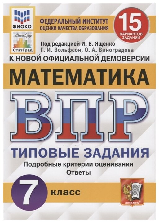 Математика 7 класс Типовые задания 15 вариантов заданий. Подробные критерии оценивания. Ответы. . (Вольфсон Георгий Игоревич; Ященко Иван Валериевич; Виноградова Ольга Александровна); Экзамен, 2021