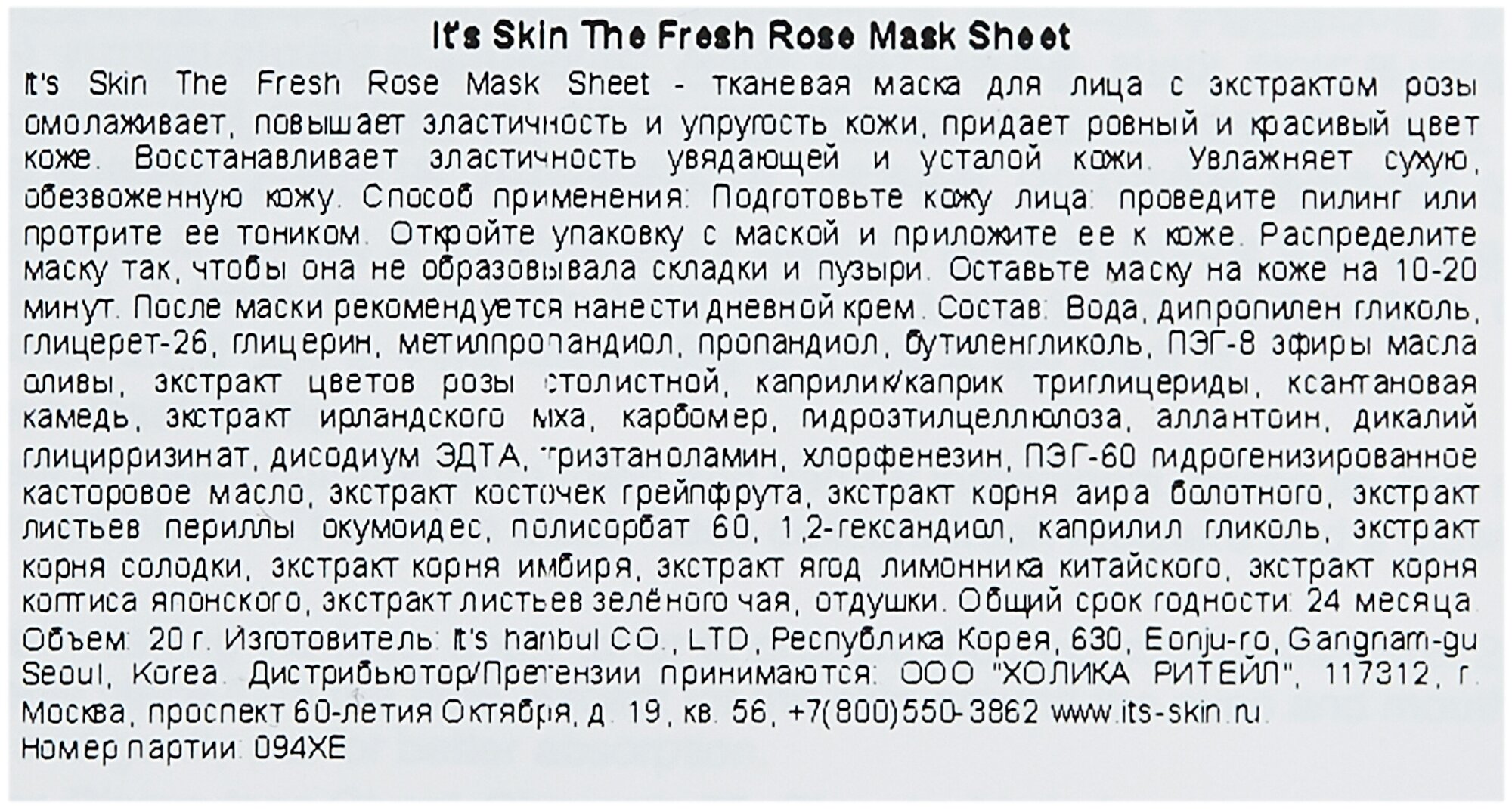 | Коллекция | Its Skin The Fresh Rose Mask Sheet |
