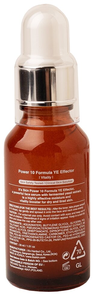 Its Skin Power 10 Formula Ye Effector — это витаминная сыворотка для лица с антарктицином. Она активно увлажняет и освежает поверхность эпидермиса, устраняет сухость и стянутость, восстанавливает гладкость, упругость и эластичность.