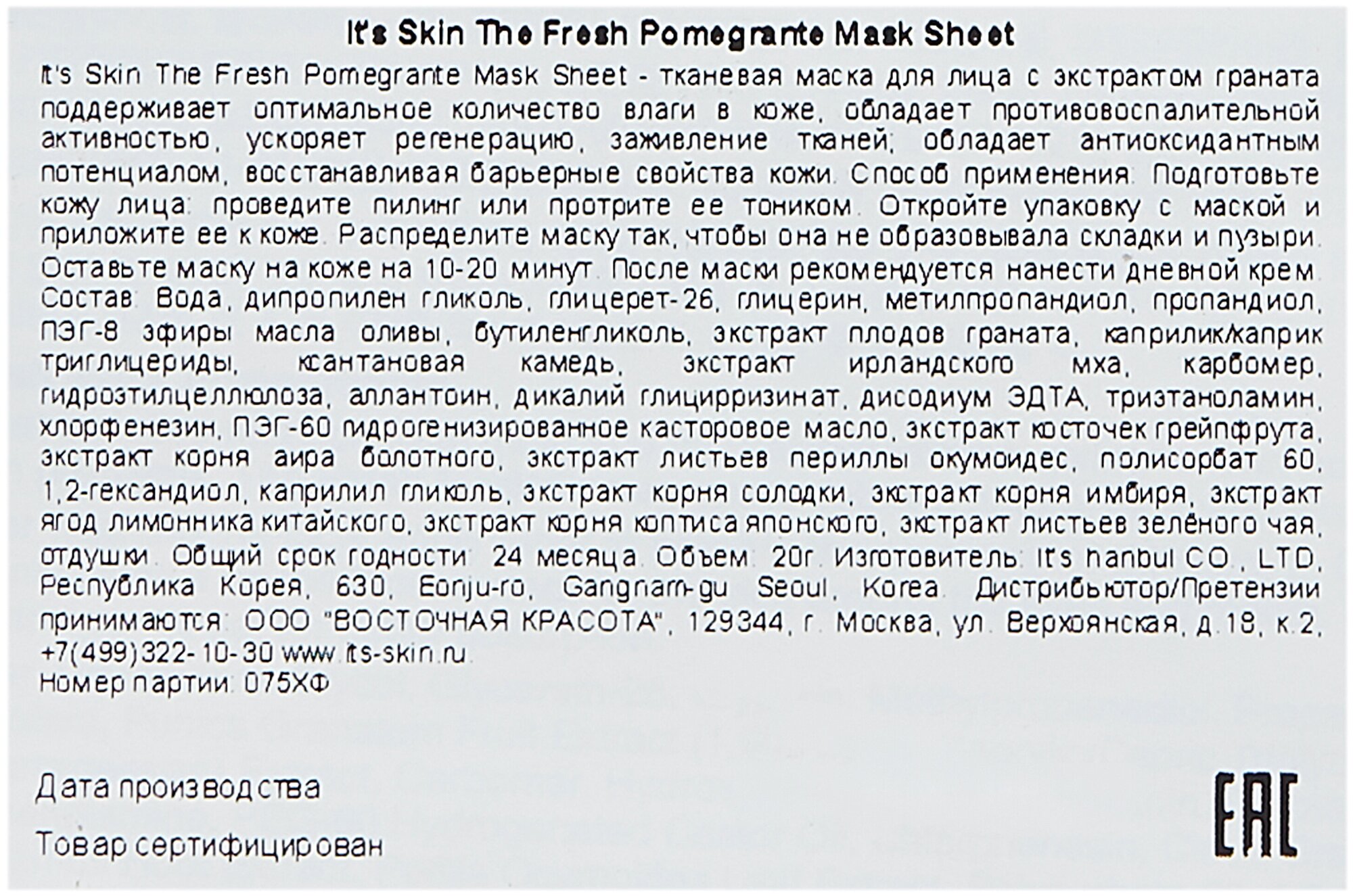 | Коллекция | Its Skin The Fresh Pomegranate Mask Sheet |